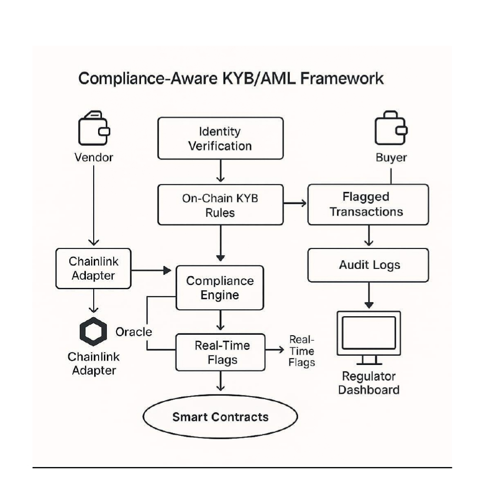 Compliance-aware Know-Your-Business (KYB) and Anti-Money Laundering (AML) verification framework for blockchain transactions.