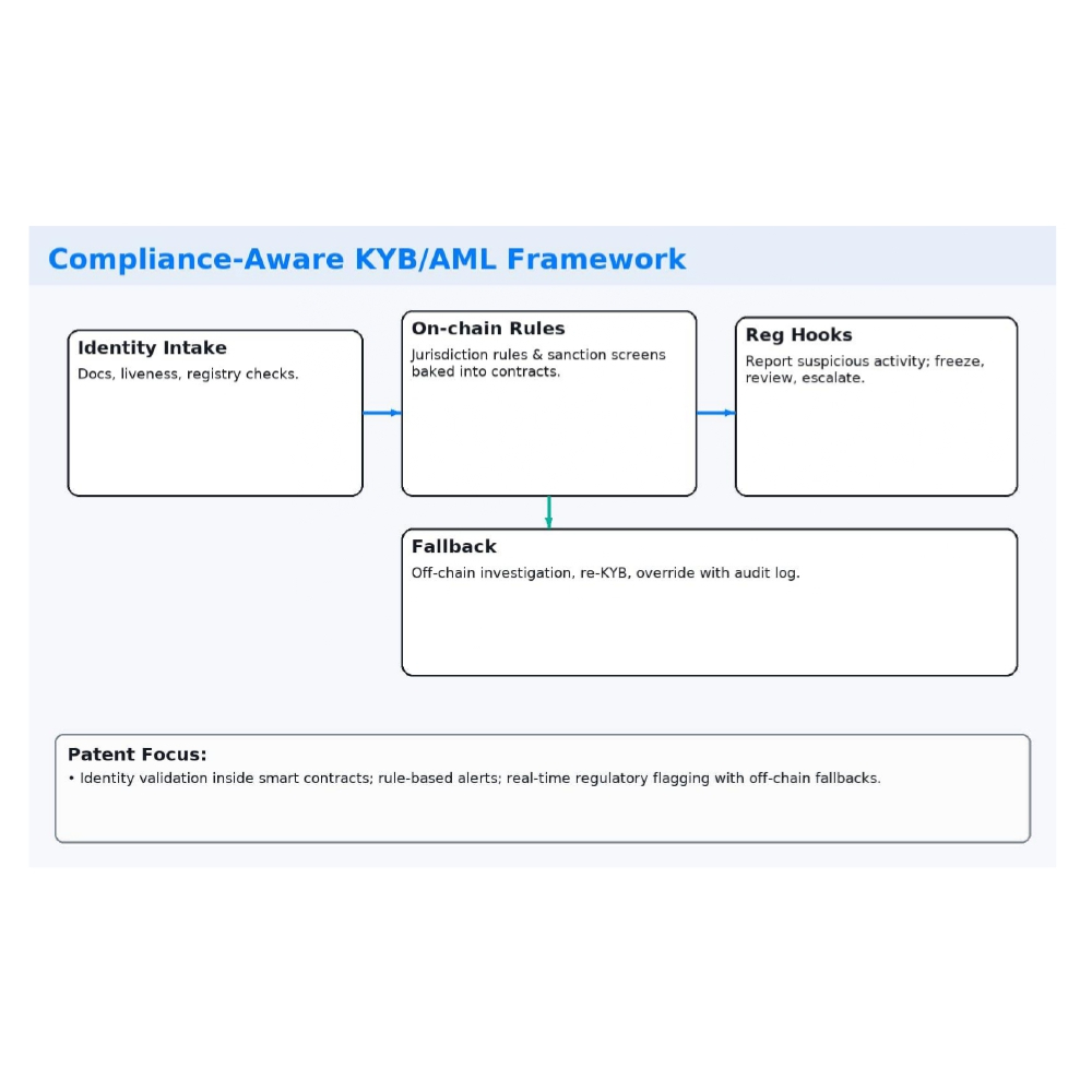 Compliance-aware Know-Your-Business (KYB) and Anti-Money Laundering (AML) verification framework for blockchain transactions.